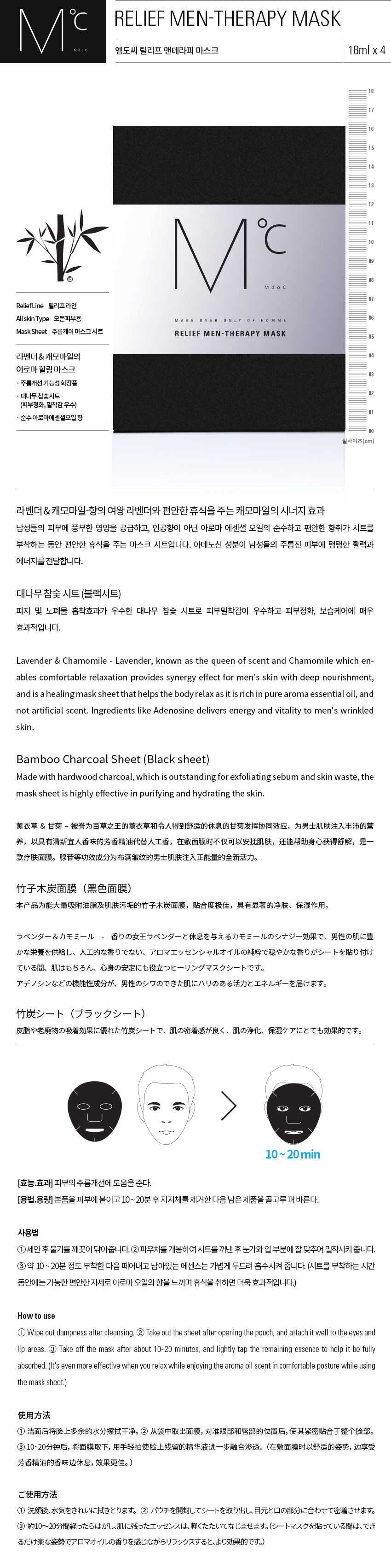라벤더&캐모마일아로마 에센셜 오일의순수하고 편안한 향취가피부는 물론 심신의안정을 주는 힐링 마스크 시트