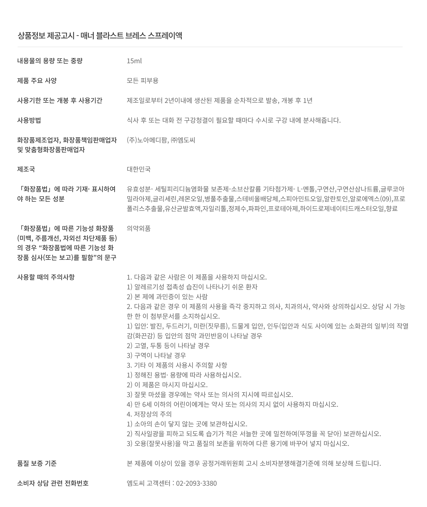 > 매너 블라스트 브레스 스프레이액