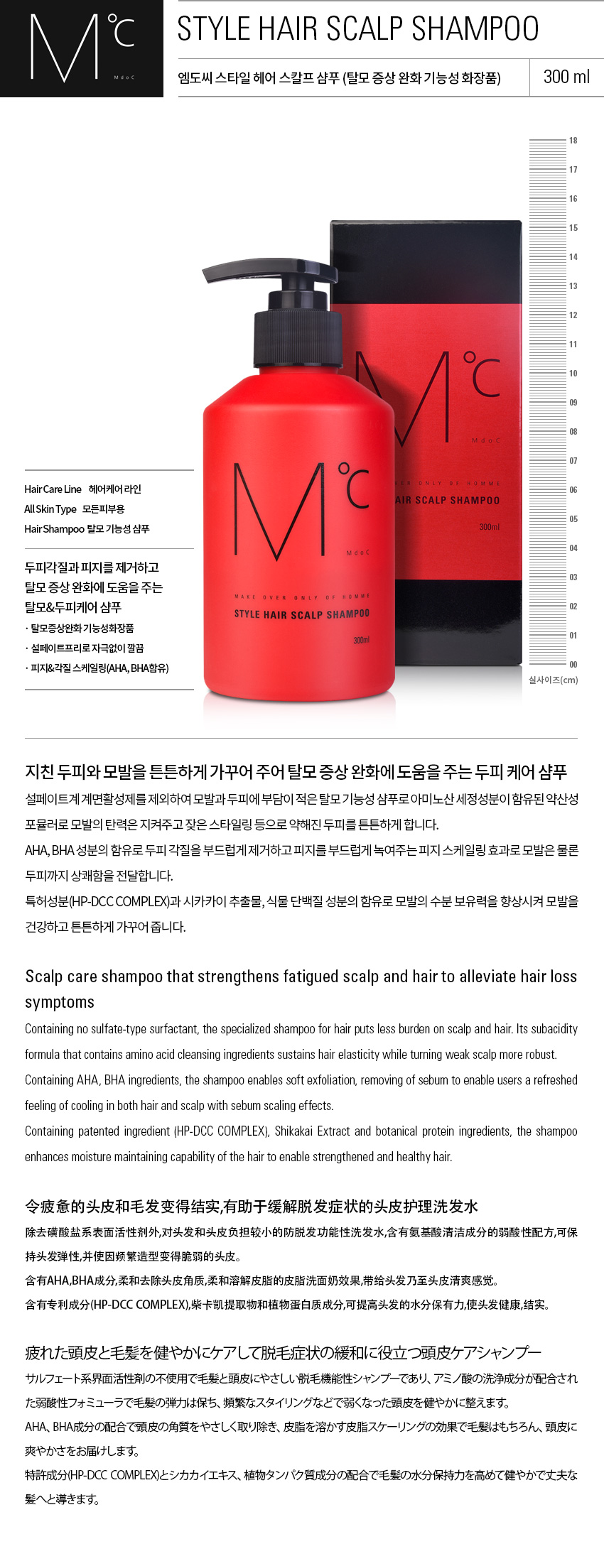 탈모증상완화 기능성 화장품 설페이트프리 비듬예방 및 가려움증 케어 피지,각질 스케일링(AHA,BHA함유)