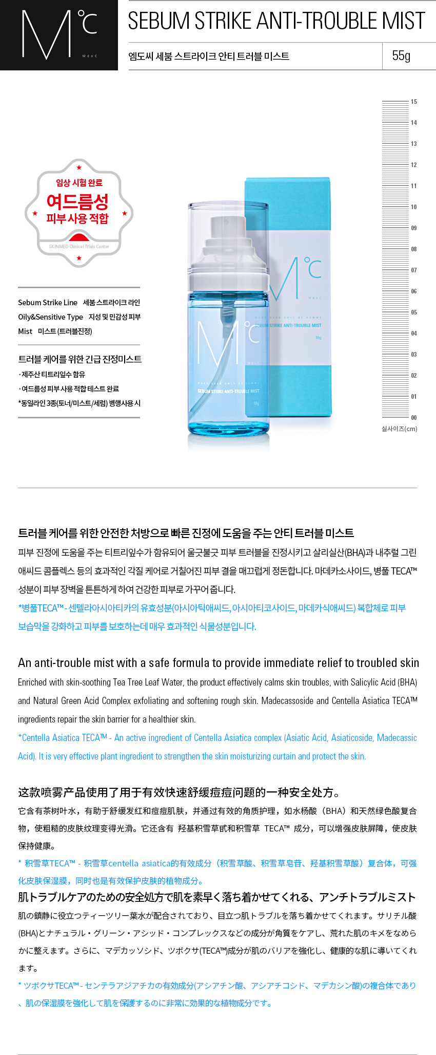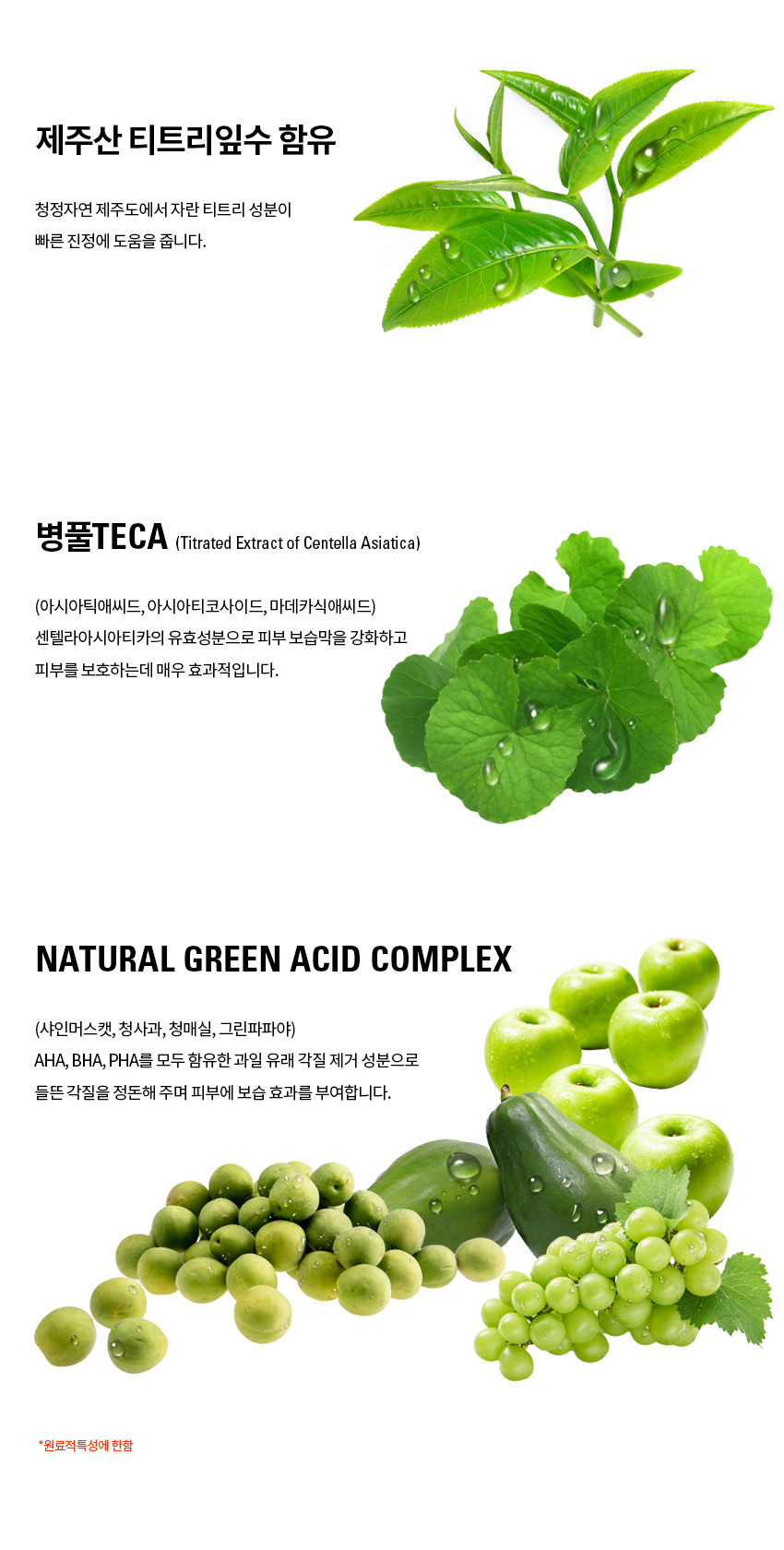 티트리잎수 함유 트러블이 걱정될 때 수시로 사용! 병풀TECA성분으로 피부장벽을 튼튼하게~