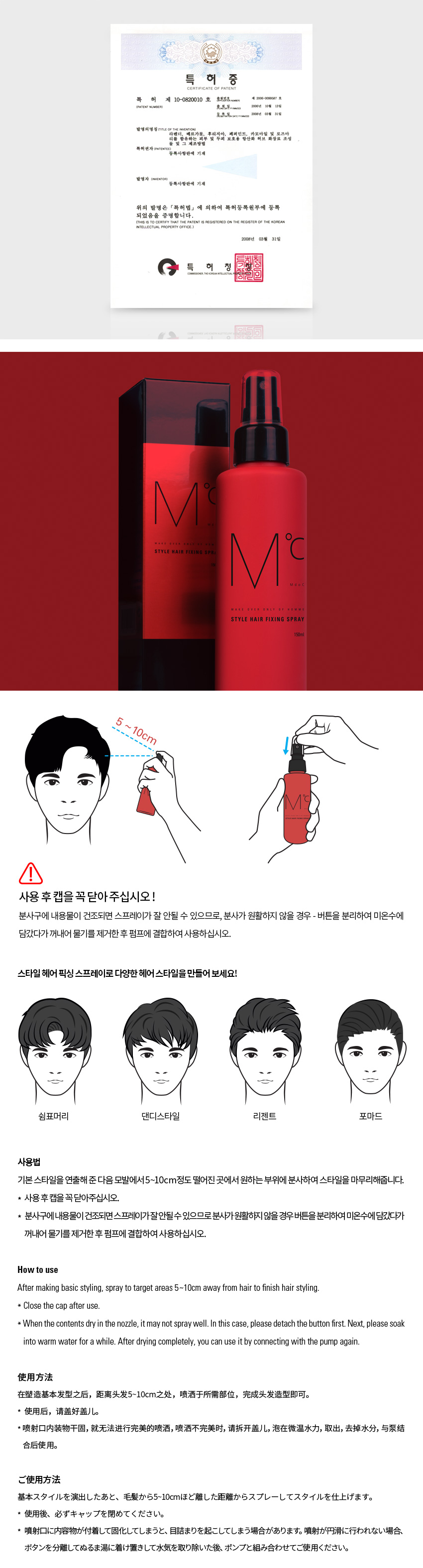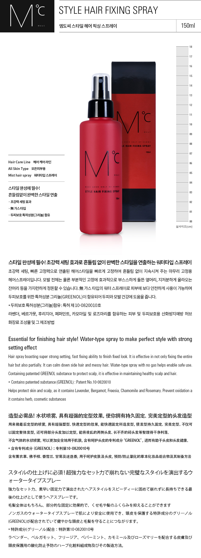 흔들림 없는 스타일 연출초강력 헤어 스프레이(無 가스타입)두피보호 특허성분 함유두피와 모발건강에 도움